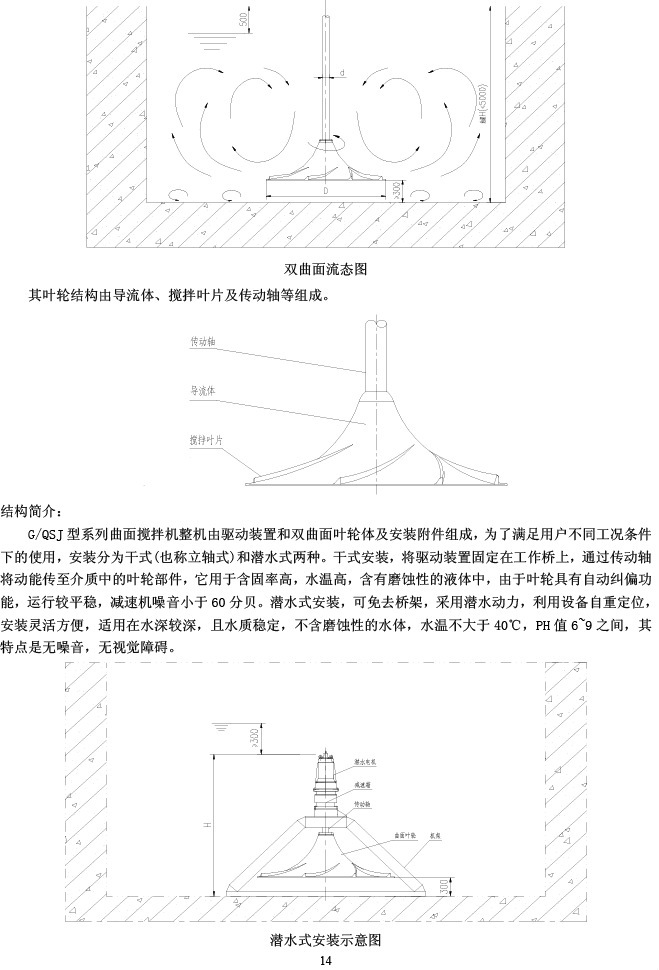 業(yè)需要對液體進行固液、氣攪拌混合的場合,尤其適用在污水處理工藝中的混凝池、調(diào)節(jié)池、厭氧池、硝化和反硝化池。