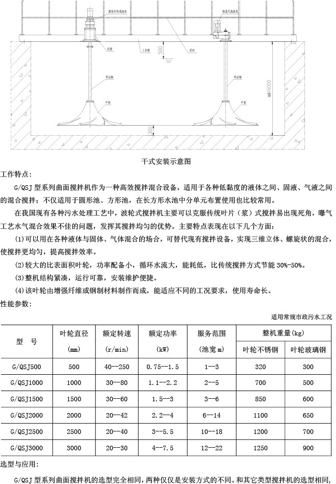 曲面攪拌機的安裝分為干式安裝和濕式安裝兩種,不論何種安裝形式均非常簡單。