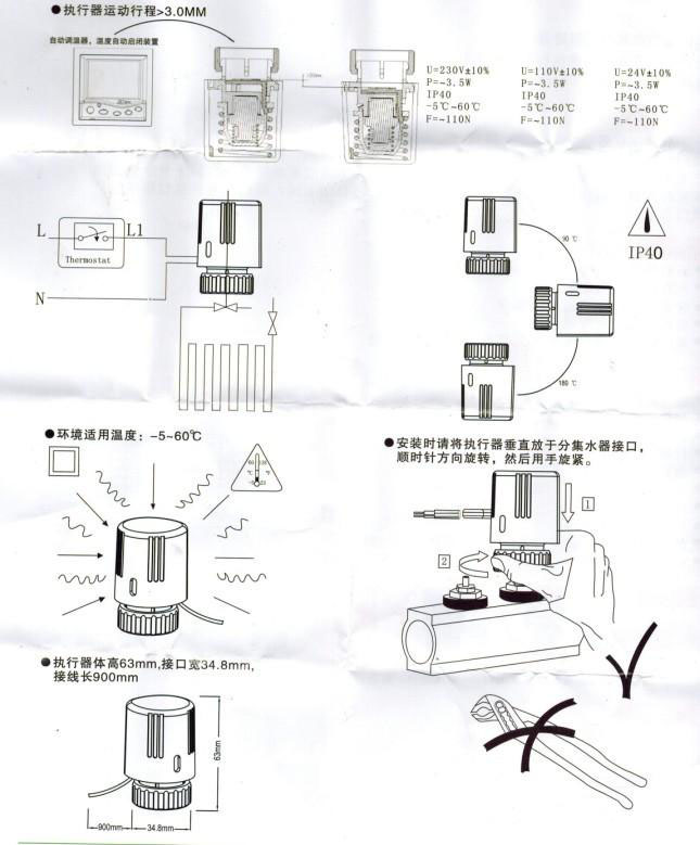 e30系列電熱二通閥由溫度控制器,閥門執(zhí)行器及閥門三部分組成。溫控器安裝在房間內(nèi)墻墻壁上,用電纜線與閥門執(zhí)行器連接。閥門執(zhí)行器用螺母連接在閥門上。e30系列電熱二通閥用于遠(yuǎn)距離控制系統(tǒng)流量、熱量(冷量)的裝置,適用于住宅、商場(chǎng)、賓館的采暖及中央空調(diào)的溫度控制。