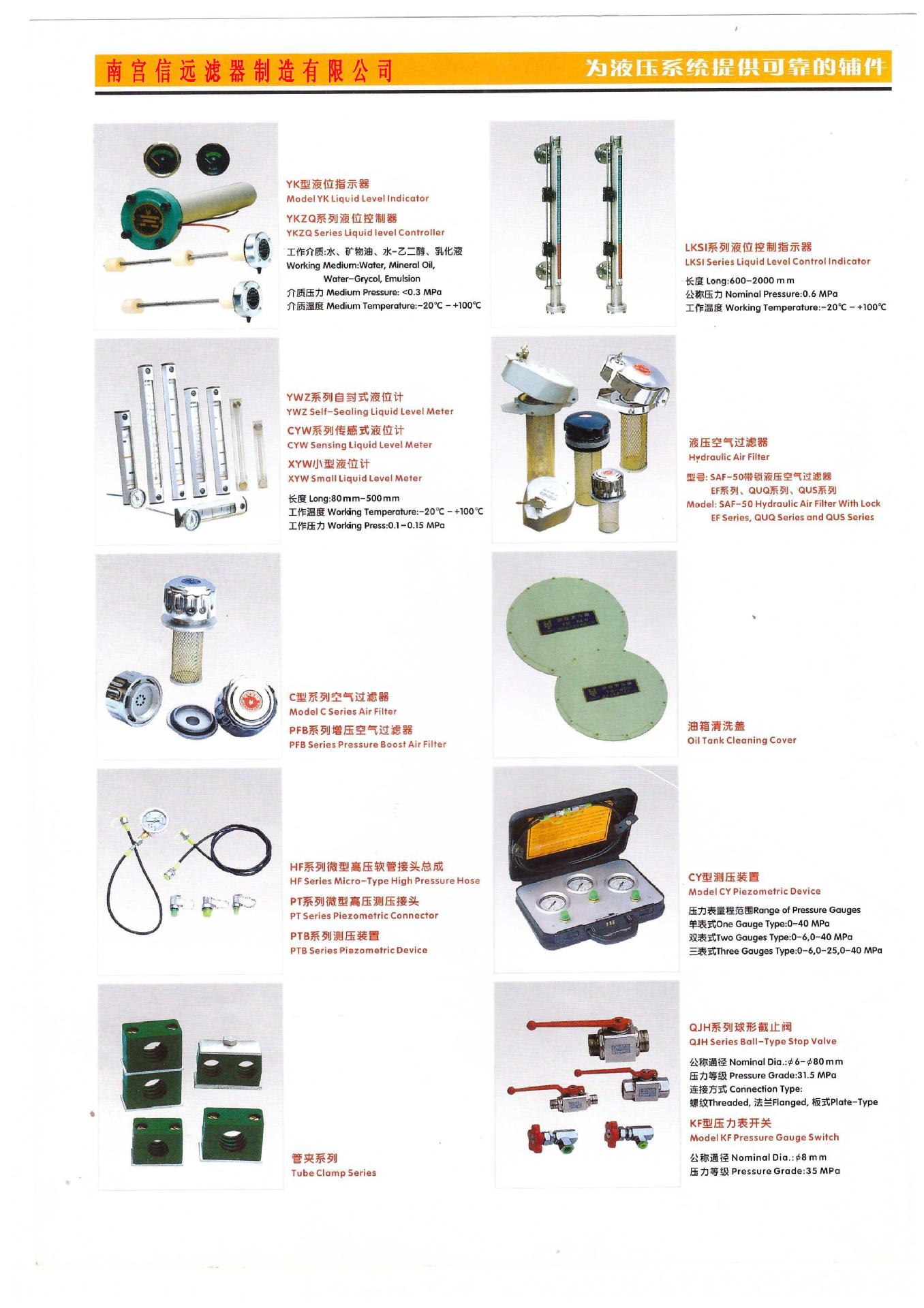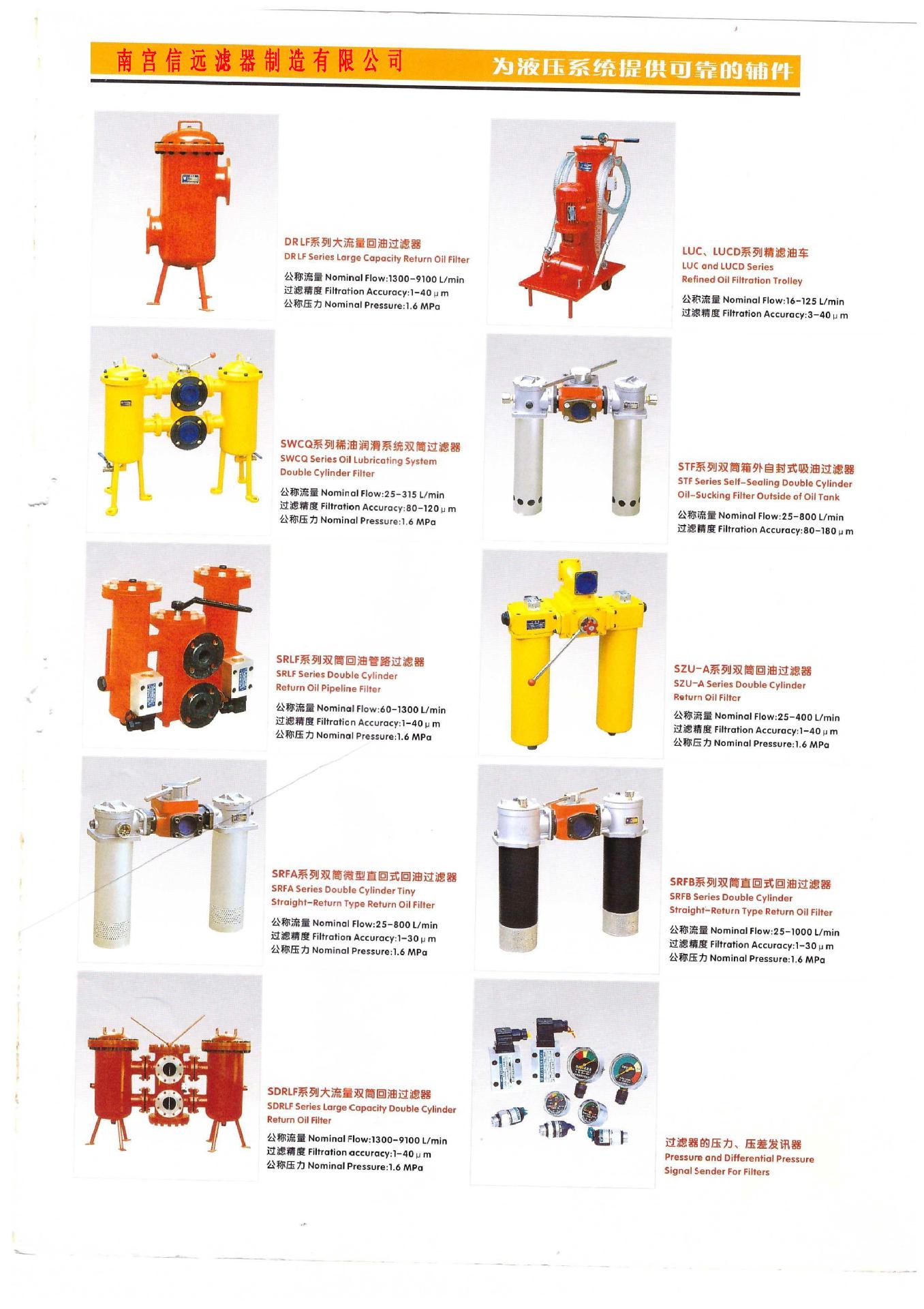 南宮信遠濾器制造有限公司,本公司成立于2000年,主要研發(fā)生產各種:“吸油過濾器,網式過濾器,線隙式過濾器,管路過濾器,高壓過濾器,低壓過濾器,回油過濾器,雙筒過濾器,網片式油過濾器,磁性過濾器,不銹鋼過濾器,燃氣過濾器,Y型過濾器,T型過濾器,空氣過濾器,液壓空氣濾清器,液位計,單向閥,壓力表開關,濾油設備,濾油機,精細濾油車,國標濾芯代替產品,代替黎明濾芯,代替賀德克濾芯等,同時生產非標產...