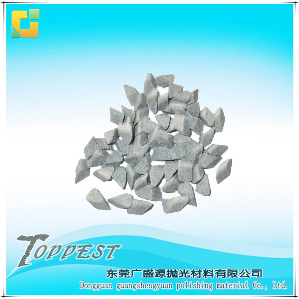 塑膠石(樹脂石、塑料石、樹脂磨料、塑料磨具)是一種表面處理用的研磨材料,用于鋁合金、鋅合金、銅等材料沖壓、壓鑄、鈑金后去批鋒、除毛邊、服從于去斑、倒角、去氧化皮、除銹電鍍前細(xì)磨,常用于家私五金(如拉手、鎖具等)及箱包五金(如皮帶扣、箱包扣、鞋扣等)。塑膠石主要有圓錐形、三角形兩種形狀,用戶可以根據(jù)產(chǎn)品的形狀及大小來選擇塑膠石的規(guī)格.