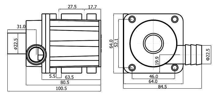 2 | 水泵出水口外徑 | 22.5mm |