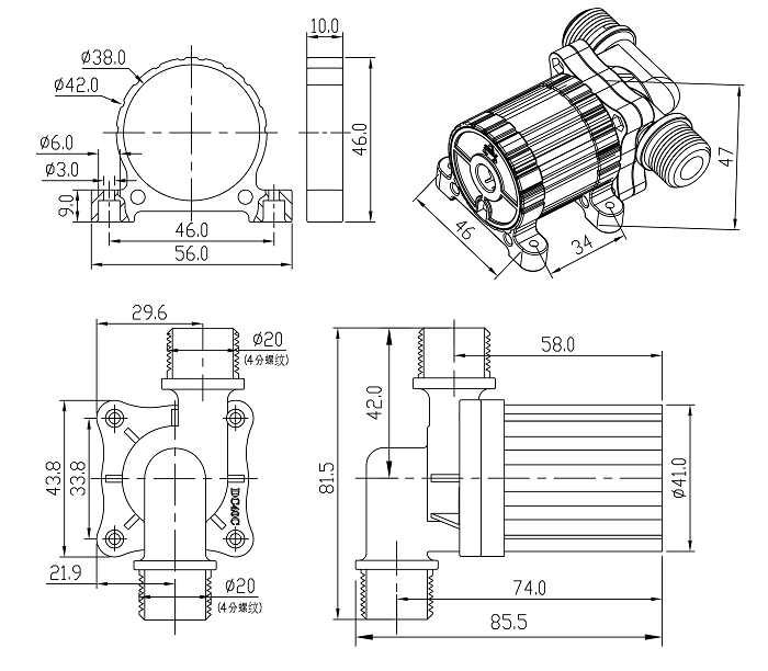 3 | 水泵進(jìn)水口外徑 | 4分外螺紋(m20mm) |