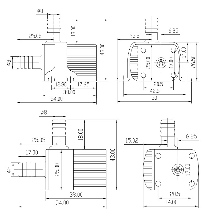 dc50d | 6~24v | 0.15~3.8a | 6.5m | 42l/min | 20mm | 20mm | pwm/0~5v/手動 | 選配 |