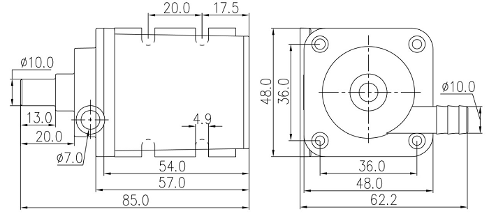 1 | 泵體尺寸及重量 | 85mmx62.2mmx48mm; 230g |