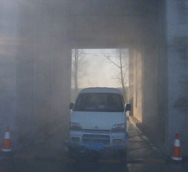 3、強(qiáng)制全方位消毒:左右不銹鋼管道消毒,減速帶底盤設(shè)置向上噴霧噴頭,使消毒達(dá)到立體交叉全方位,無(wú)消毒盲區(qū)。