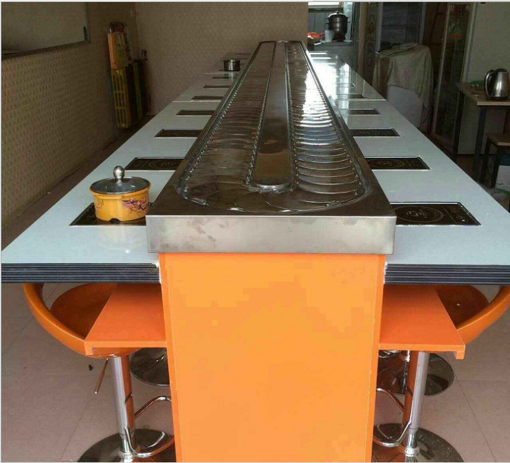 來(lái)回傳送的精美菜品,更是讓人目不暇接,擁有傳送帶的火鍋店面,更加美觀。2設(shè)備使用壽命超長(zhǎng),全不銹鋼的軌道和鏈條,及時(shí)水撒到設(shè)備上,也不會(huì)生銹