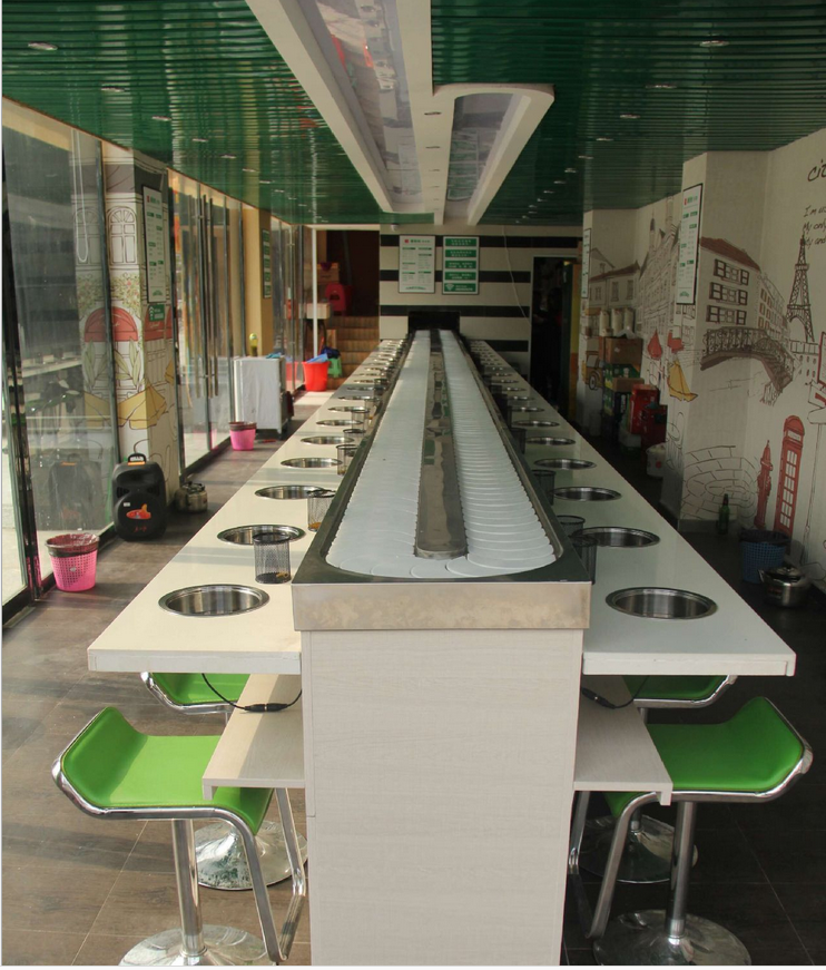 就坐在舒適的椅子上看著眼前的食材,喜歡就拿,不喜歡就讓其繼續(xù)輸送過去即可。既節(jié)約人力資源投入,也方便消費者,更具有安 全、快捷、衛(wèi)生、舒適、美觀、時尚等特點。 回轉(zhuǎn)小火鍋設(shè)備價格多少,其實這沒有一個具體的數(shù)字,完整的回轉(zhuǎn)小火鍋設(shè)備包括臺架裝置、動力裝置、輸送帶、供電系統(tǒng)以及裝飾等等,隨每個客戶的要求不一樣價格也是隨之波動,
