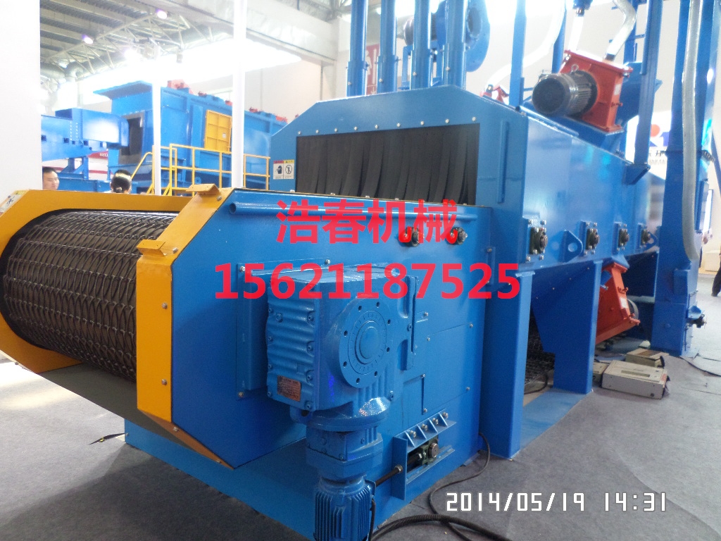 網(wǎng)帶式拋丸清理機網(wǎng)帶式拋丸機是通過網(wǎng)帶輸送系統(tǒng)輸送工件到封閉的拋丸室,利用高速旋轉的的拋丸器葉輪將彈丸加速拋射至工件表面,去除其表面的銹層、焊渣及氧化皮,使其得到均勻一致的金屬光澤,提高鋼材的涂飾質(zhì)量與防腐效果。網(wǎng)帶可變頻調(diào)速,可以獲得滿意的清理效果。采用φ6mm的軋制mn13盤條編制而成,使用壽命更長。該設備主要用于汽車、航天、鐵路與機械制造業(yè)的薄壁鑄件或脆弱的鋁合金鑄件、陶瓷等小型零件的表面拋丸,亦可用于機械零件的拋丸強化。