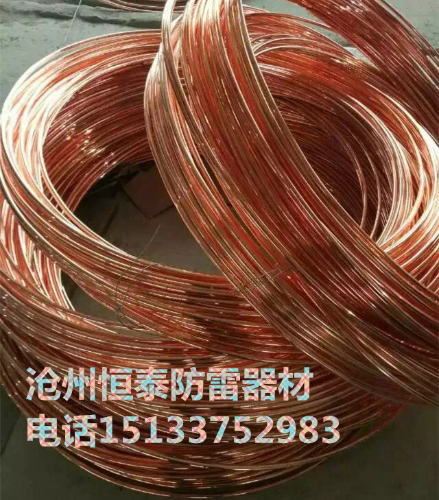 銅包鋼圓線技術(shù)優(yōu)勢: 銅包鋼圓線制造工藝是采用水平連鑄,電氣性能極佳,表層紫銅材料優(yōu)良的導(dǎo)電特性,使其自身電阻值遠(yuǎn)遠(yuǎn)低于常規(guī)材料。防腐蝕性優(yōu)越獨特,由于銅鋼結(jié)合界面采用高溫熔接,所以結(jié)合面不會出現(xiàn)殘留物,不會出現(xiàn)腐蝕現(xiàn)象;表面銅層較厚(平均厚度大于 0.3mm )耐腐蝕性強(qiáng),使用壽命長于 50 年,可以大大的減輕檢修勞動強(qiáng)度。該產(chǎn)品適用于不同土壤濕度、溫度、ph值及電阻率變化條件下的接地防雷。常用作屋頂女兒墻防雷帶和垂直接地引上、引下線、水平接地極連接等。