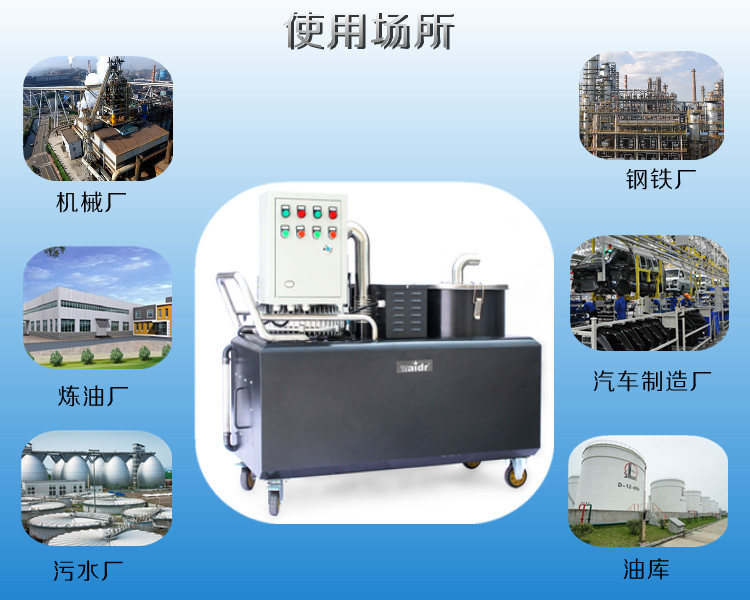5. 適用場(chǎng)所:油田、油庫(kù),機(jī)械制造、金屬加工,污水鐵削回收等場(chǎng)所使用,可與生產(chǎn)線或生產(chǎn)設(shè)備配套使用。
