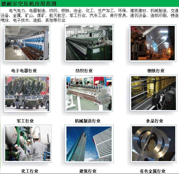 呼倫貝爾德耐爾節(jié)能型螺桿空壓機(jī)-節(jié)能好幫手適用范圍: