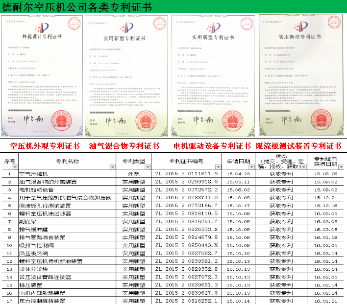 呼倫貝爾德耐爾節(jié)能型螺桿空壓機(jī)-節(jié)能好幫手專利證書