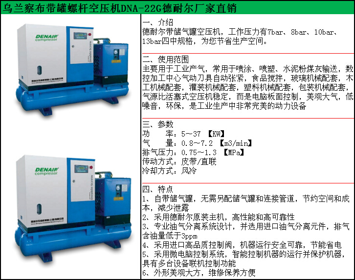 瀏覽:277次[供應(yīng)]烏蘭察布帶罐螺桿空壓機dna-22g德耐爾廠家直銷