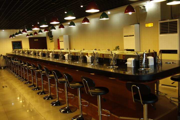 2、節(jié)省人力物力:客人在各自的座位上可隨意選擇擺放在輸送帶上的食品,無需服務(wù)員送上,本機(jī)以臺(tái)架代替餐桌,可節(jié)省大量餐桌及臺(tái)布