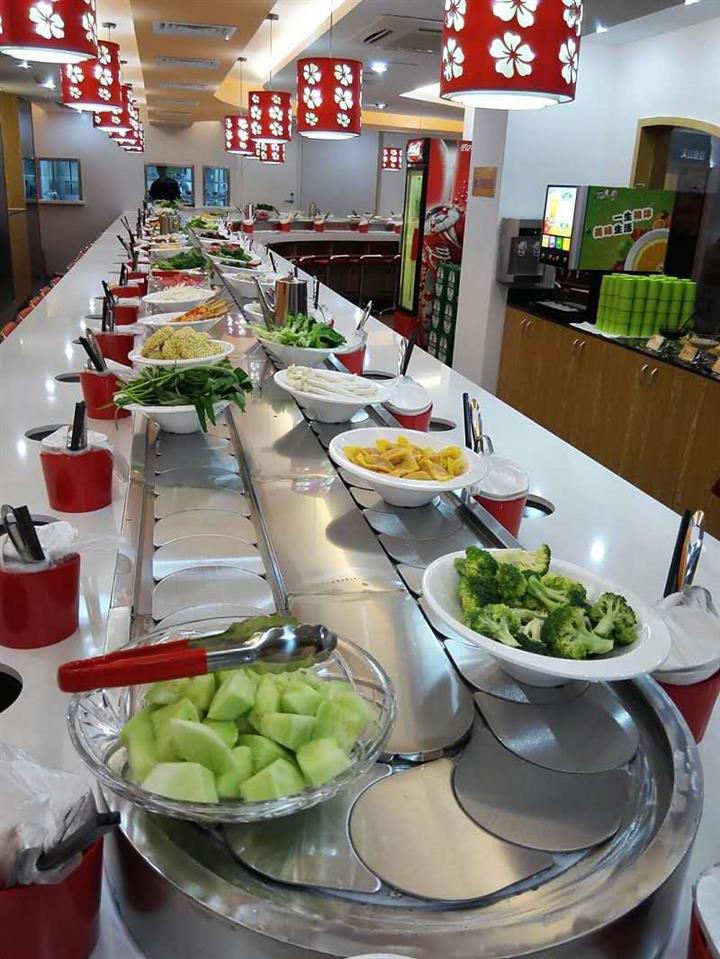 就坐在舒適的椅子上看著眼前的食材,喜歡就拿,不喜歡就讓其繼續(xù)輸送過去即可。既節(jié)約人力資源投入,也方便消費(fèi)者,更具有安 全、快捷、衛(wèi)生、舒適、美觀、時(shí)尚等特點(diǎn)。 回轉(zhuǎn)小火鍋設(shè)備價(jià)格多少,其實(shí)這沒有一個(gè)具體的數(shù)字,完整的回轉(zhuǎn)小火鍋設(shè)備包括臺(tái)架裝置、動(dòng)力裝置、輸送帶、供電系統(tǒng)以及裝飾等等,隨每個(gè)客戶的要求不一樣價(jià)格也是隨之波動(dòng),