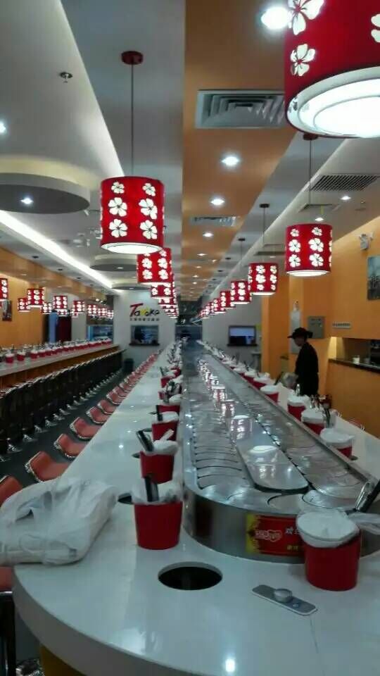 回轉(zhuǎn)設(shè)備可根據(jù)餐店使用面積及客戶要求進(jìn)行設(shè)計(jì),我公司設(shè)備傳動(dòng)系統(tǒng)采用密封式設(shè)計(jì),輸送連帶結(jié)構(gòu)嚴(yán)謹(jǐn),運(yùn)行安 全平穩(wěn),符合食品衛(wèi)生要求。可以節(jié)省人力物力,客人在各自的座位上可隨意選擇擺放在輸送帶上的食物,無(wú)需服務(wù)員送上,同樣回轉(zhuǎn)輸送設(shè)備以其美觀、時(shí)髦、新奇、動(dòng)感吸引著更多的顧客,使青少年所青睞。