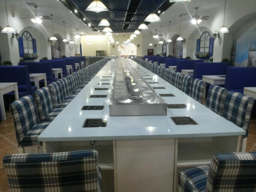 4、設(shè)計(jì)合理,鏈帶經(jīng)久耐用 5、鏈片墊條采用特殊材質(zhì)制造,具有耐磨、無(wú)噪音等特點(diǎn)。我公司回轉(zhuǎn)輸送設(shè)備是以低價(jià)格.高品量贏取客戶的支持。設(shè)備餐臺(tái)臺(tái)面的裝飾材料可以選擇人造石