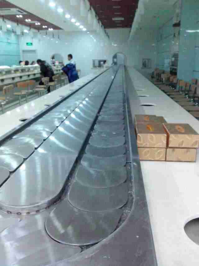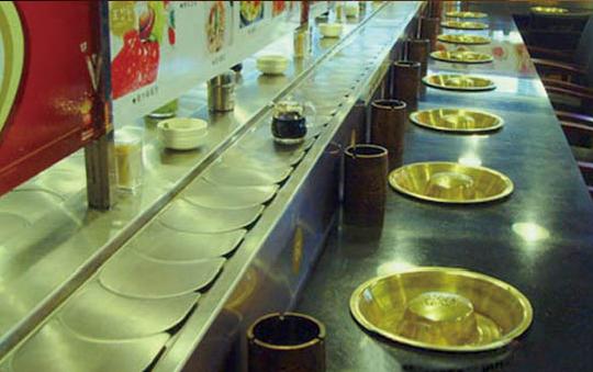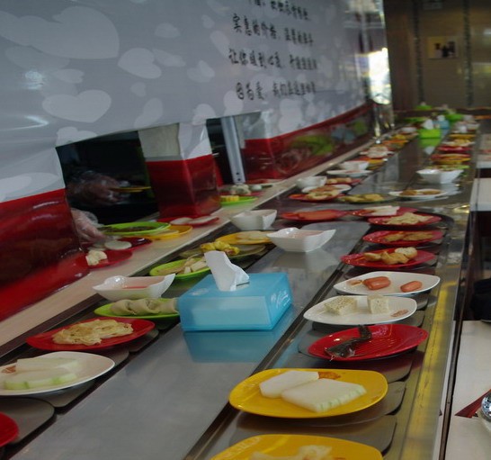 符合食品衛(wèi)生要求?梢怨(jié)省人力物力,客人在各自的座位上可隨意選擇擺放在輸送帶上的食物,無(wú)需服務(wù)員送上,同樣回轉(zhuǎn)輸送設(shè)備以其美觀、新奇、動(dòng)感吸引著更多的顧客,使青少年所青睞。