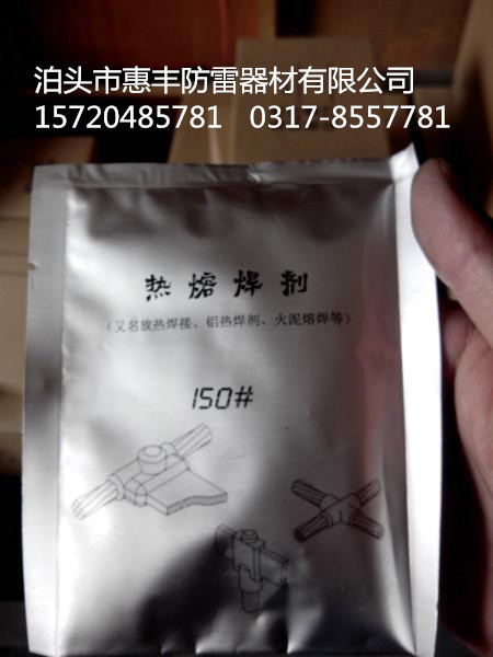 放熱焊接焊粉 ,又稱為火泥熔接焊粉 、火泥焊接焊粉 、熱熔焊接焊粉 、火泥熔焊焊粉 、鋁鎂合金犧牲陽極焊藥、鋁熱焊劑 、焊粉 、焊劑 、焊藥。是銅基鋁熱焊劑 的一種,是惠豐防雷系列產(chǎn)品中的核心產(chǎn)品。
