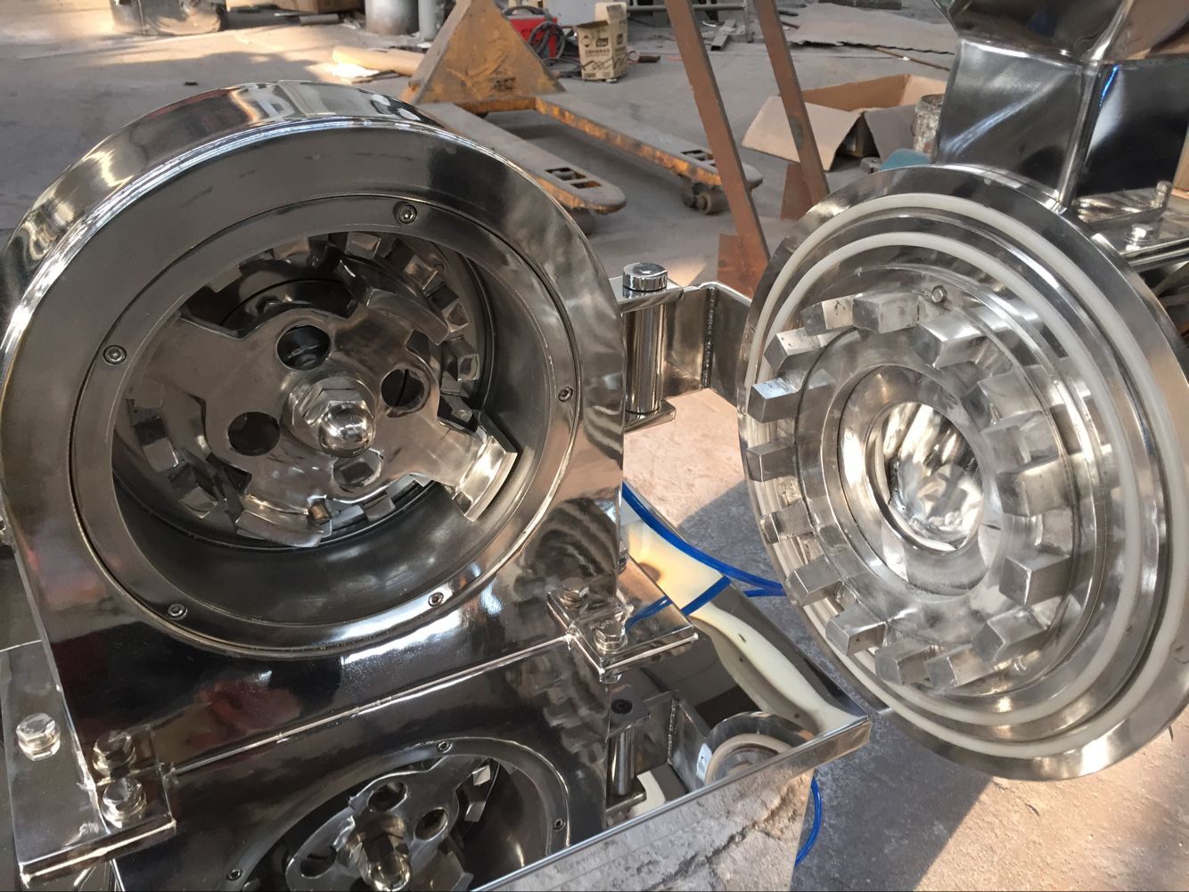 萬(wàn)能粉 碎機(jī)利用活動(dòng)齒盤(pán)和固定齒盤(pán)的相對(duì)運(yùn)動(dòng),使被粉 碎物料經(jīng)齒沖擊,摩擦及物料彼此沖擊,而獲得粉 碎。