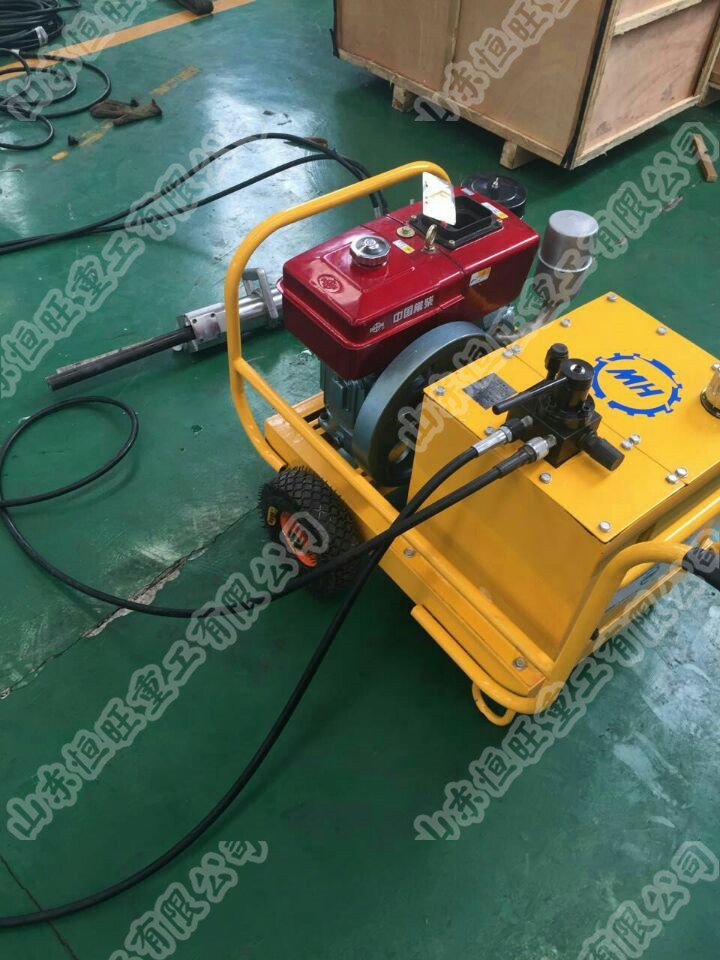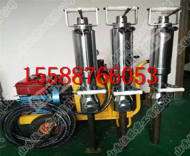 液壓劈裂機(jī)是以動(dòng)力站產(chǎn)生的高壓液壓油為能量源,通過油管輸送到各個(gè)劈裂機(jī) (又名劈裂槍、分裂機(jī))的油缸管,控制劈裂機(jī)內(nèi)的活塞桿的推動(dòng)伸縮,并巧妙的應(yīng)用了楔器原理,使劈石作用力達(dá)到幾百噸甚至上千噸,任何物體都有其自身的特點(diǎn),巖石和混凝土具有極高的外部抗壓強(qiáng)度,而從內(nèi)部向外的抗拉強(qiáng)度卻很小,其抗壓與抗拉強(qiáng)度液壓分具有100:2--10的差異,處于脆性狀態(tài)。劈裂機(jī)抓住巖石與混凝土呈脆性特點(diǎn),利用楔塊原理來設(shè)計(jì)的--在最狹窄的孔中向外能夠釋放出極大的分裂力。由泵站輸出的高壓油,驅(qū)動(dòng)油缸,產(chǎn)生巨大推力,驅(qū)動(dòng)楔塊組中的中間楔塊向前駛出,將反向楔塊向兩邊撐開。所以用劈裂機(jī)可以在幾秒鐘內(nèi)輕易地把巨石劈裂開,使堅(jiān)硬的礦石從山體中分離。