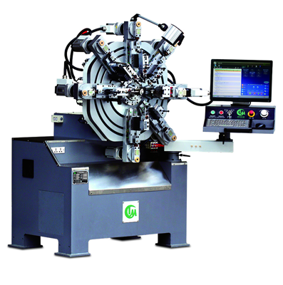 2.對(duì)于普通凸輪彈簧機(jī)來說,凸輪是彈簧機(jī)動(dòng)力傳動(dòng)系統(tǒng)上的一個(gè)配件,凸輪機(jī)對(duì)于調(diào)機(jī)的師傅技術(shù)要求很高,一般師傅需要三年的經(jīng)驗(yàn),可見調(diào)試的難度。而無凸輪彈簧機(jī)全部采用伺服電機(jī)獨(dú)立控制每一個(gè)工位,調(diào)試就方便快捷精準(zhǔn)了很多,一般師傅很容易上手。