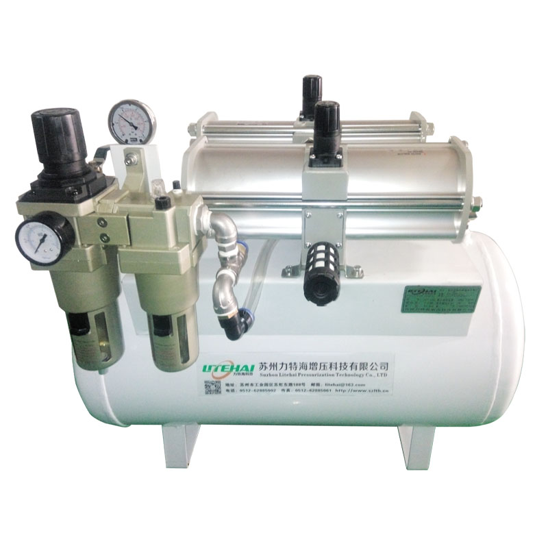 1.主要用于工廠壓縮空氣的二級(jí)增壓,可以方便解決工廠壓縮空氣氣源壓力不足的問題,空氣壓力可由1-8kg增壓至2-40 kg等更高的壓力。