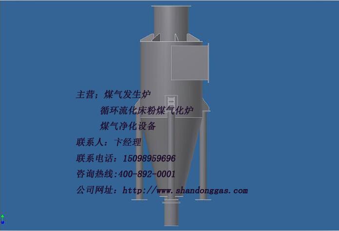 煤氣帶動(dòng)灰塵以一定的速度沿切線方向進(jìn)入除塵器,在除塵器內(nèi)以螺旋線的形式作回轉(zhuǎn)運(yùn)動(dòng)。懸浮的灰塵顆粒在離心力的作用下被拋向圓筒的內(nèi)表面,在重力作用下降落至排灰管,而煤氣則從下部進(jìn)入中央管,形成上升的螺旋氣流,從頂部離開(kāi)除塵器。