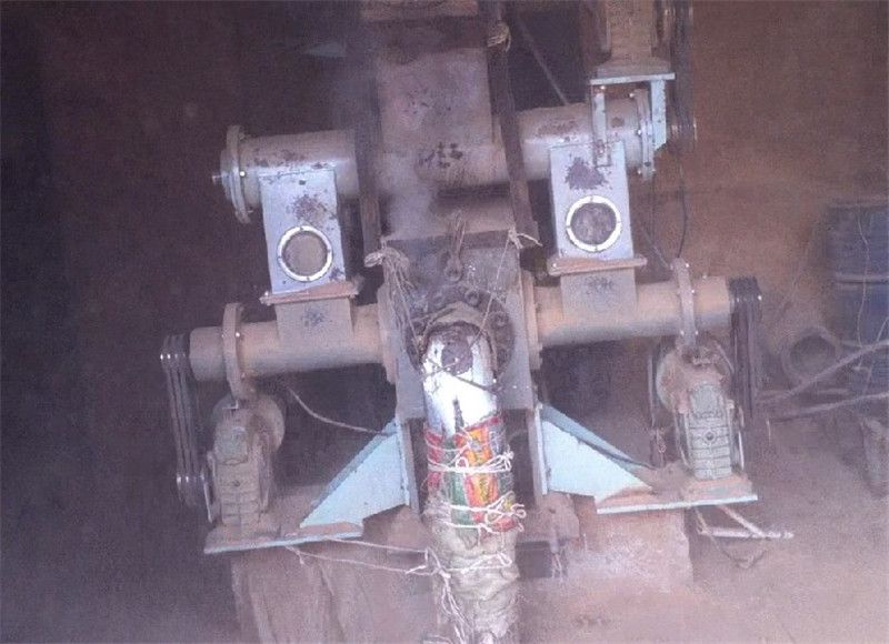 由絞籠1上料 2變頻電機(jī)調(diào)節(jié)物料速度 進(jìn)入3分料絞籠, 3分到左右兩側(cè)到達(dá)下面 然后通過左右兩側(cè)的4減速機(jī)帶動左右小絞籠輸送到主機(jī)前面的十字路口類似于下面圖片(下面圖片只是個示意圖不是我們機(jī)器上的)但是不是這個樣子的 左右兩側(cè)通過絞籠強(qiáng)制喂料到中間 后面有沖頭活塞原理沖壓出物料經(jīng)過模具把物料沖出來