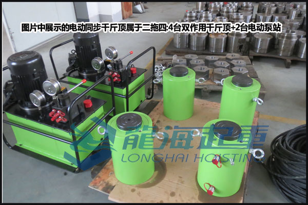 電動(dòng)同步液壓千斤頂:由一臺(tái)或者多臺(tái)液壓千斤頂+泵站,組成一拖四、一拖六、一拖八等