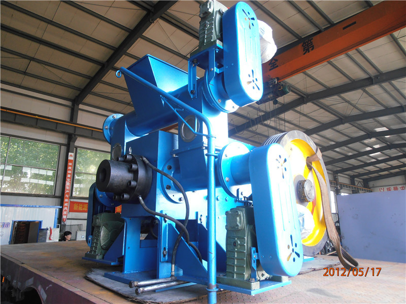 由絞籠1上料 2變頻電機(jī)調(diào)節(jié)物料速度 進(jìn)入3分料絞籠, 3分到左右兩側(cè)到達(dá)下面 然后通過左右兩側(cè)的4減速機(jī)帶動左右小絞籠輸送到主機(jī)前面的十字路口類似于下面圖片(下面圖片只是個(gè)示意圖不是我們機(jī)器上的)但是不是這個(gè)樣子的 左右兩側(cè)通過絞籠強(qiáng)制喂料到中間 后面有沖頭活塞原理沖壓出物料經(jīng)過模具把物料沖出來