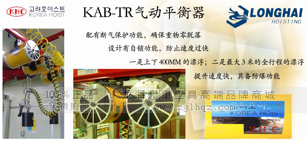 1. 韓國khc氣動平衡器主要有kab型和kab-tr型產(chǎn)品,其可配合多種非標(biāo)鋏具使用,可搭配懸臂吊或者導(dǎo)軌來安 裝使用進(jìn)行移動作業(yè);