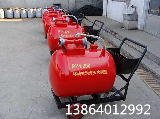 py8/200移動(dòng)式泡沫滅火裝置、py4/200半固定式泡沫滅火裝置、是新型移動(dòng)式泡沫滅火裝置,也叫移動(dòng)式泡沫滅火裝置,其操作迅速簡(jiǎn)便、可靠性強(qiáng).用于撲滅甲 、乙、丙類非水溶性液體火災(zāi)。被廣泛用于市政住宅區(qū)、廠礦企業(yè)、油庫(kù)、化工部門、熱處理車間、加油站等場(chǎng)所、主要由泡沫液儲(chǔ)罐、噴槍、比例混合器、水帶、及推車底盤等構(gòu)成,其構(gòu)成簡(jiǎn)圖如下: