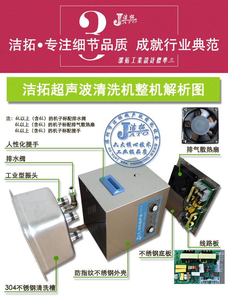 6、采用優(yōu)質(zhì)進(jìn)口部件,超聲波功率轉(zhuǎn)換效率高、功率強(qiáng)勁、清洗效果好