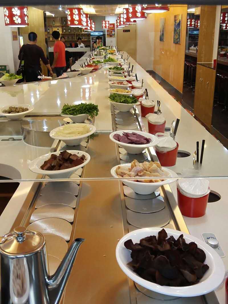 可最大限度增加餐位數(shù),也可根據(jù)店布局設(shè)計不同形狀的傳送設(shè)備,不需要設(shè)大廚房,整個配制、加工過程,都由顧客在餐桌上自己完成,節(jié)省空間是其一優(yōu)點;