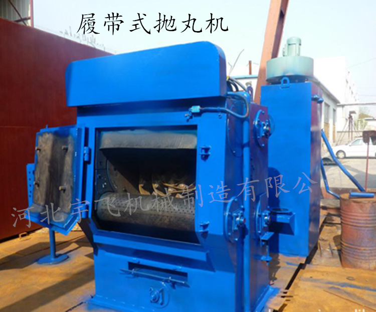 拋丸清理機為履帶式拋丸清理設(shè)備,由拋丸清理室體、拋丸器總成、丸料循環(huán)凈化系統(tǒng)、除塵系統(tǒng)和電氣控制部分等組成。