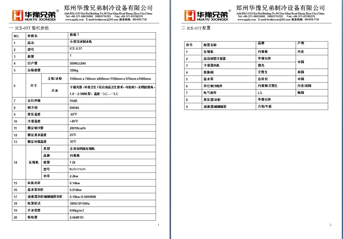 二、華豫兄弟片冰 機(jī)標(biāo)準(zhǔn)工況:環(huán)境溫度25℃,給水溫度16℃,冷凝溫度40℃