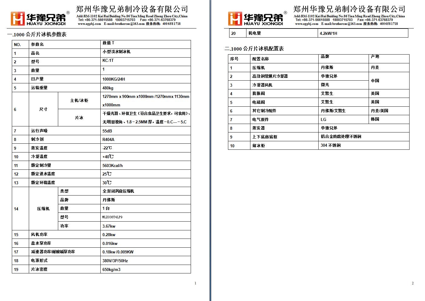 二、華豫兄弟片冰 機(jī)標(biāo)準(zhǔn)工況:環(huán)境溫度25℃,給水溫度16℃,冷凝溫度40℃