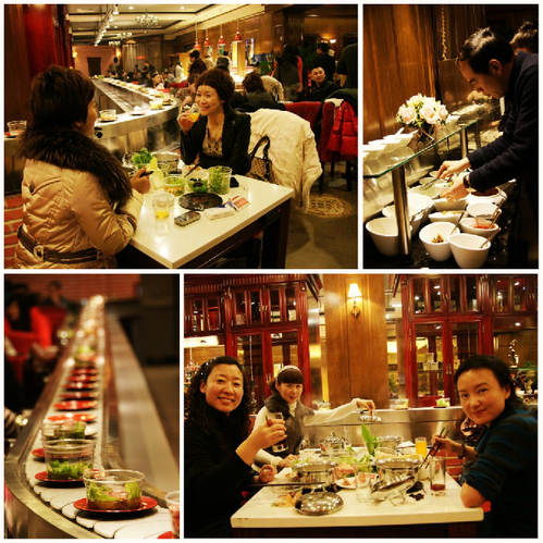 客人只需要坐在自己的位子上,一鍋湯底,菜品自動(dòng)傳到我們的身邊,只需動(dòng)動(dòng)手,就可以拿到自己想要的菜品,來(lái)回傳送的精美菜品,更是讓人目不暇接,擁有傳送帶的火鍋店面,更加美觀。
