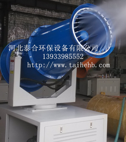 泰合生產(chǎn)的高壓遠(yuǎn)程霧炮逸塵車的工作原理是根據(jù)風(fēng)送原理,將進(jìn)口高壓泵噴把水將嘴霧化 均勻。在利用風(fēng)機(jī)風(fēng)量和風(fēng)壓,把霧化水霧押送至遠(yuǎn)距離(粉 塵區(qū)),通過水霧噴灑覆蓋住大面積粉 塵區(qū), 粉 塵遇到水霧凝結(jié)成細(xì)小顆粒,由于重力增加,粉 塵隨之跟著降落,粉 塵無法在揚(yáng)起,從而 達(dá)到降塵凈化空氣污染物降落的目的。