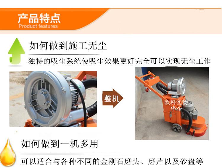 歐科機(jī)械地坪打磨機(jī)它能有效打磨混凝土表層及環(huán)氧砂漿層和舊的環(huán)氧地面,也可用于環(huán)氧中涂膩?zhàn)哟蚰ヌ岣攮h(huán)氧砂漿層的平整度,同時(shí)也可以用于小面積舊環(huán)氧舊涂層打磨等。具有輕便、靈活,工作效率高等特點(diǎn)。帶有吸塵器電源插座,吸塵器電源線可以直接和研磨機(jī)相連,避免工作時(shí),需要2條電源線的麻 煩。配上特種磨盤(pán)還可做地面翻新和拋光用,真正的一機(jī)多用。
