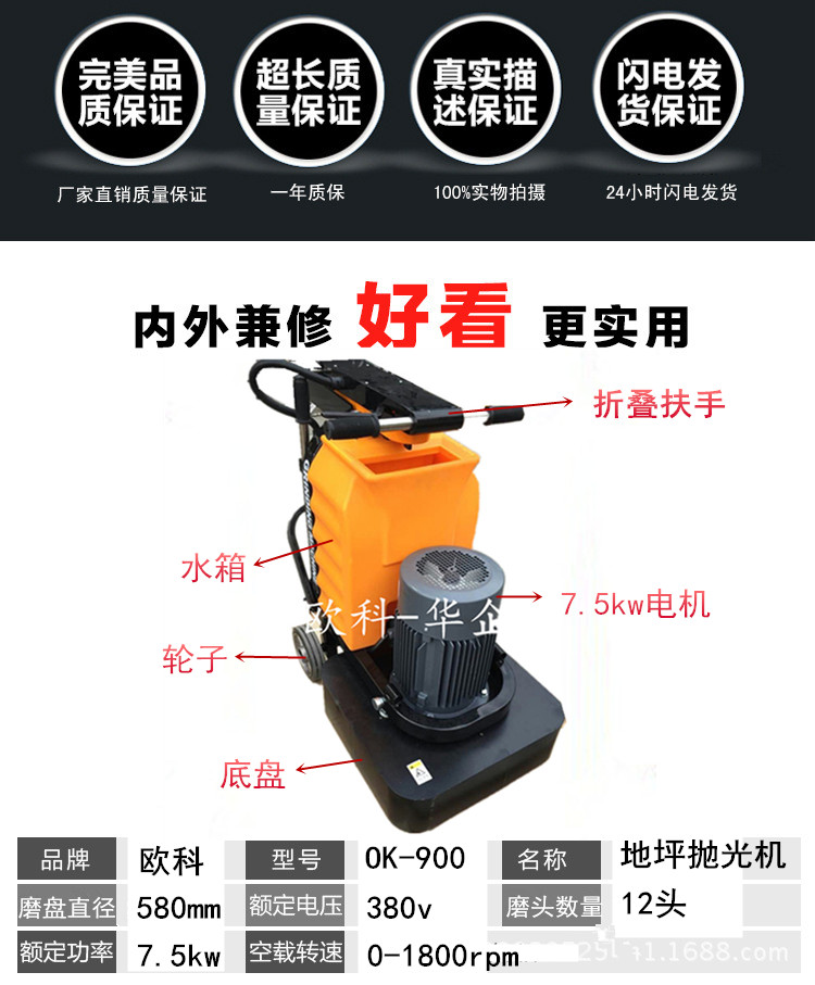 地坪拋光機產(chǎn)品技術參數(shù)型號ok-900工作寬度480*480mm功率7.5kw電壓380v轉(zhuǎn)速1500轉(zhuǎn)/分磨盤280m*4水箱容積35l重量210kg 拋光機保養(yǎng)常識及注意事項