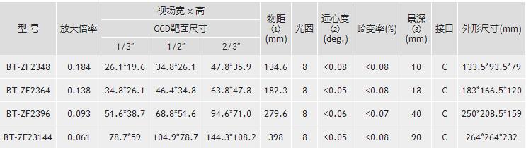①物距:前端物鏡到物體的距離。使用時(shí)將其設(shè)定在標(biāo)準(zhǔn)值的±3%之內(nèi)可達(dá)到最佳分辨率和最低畸變。