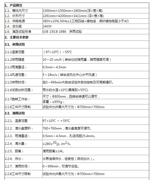◆淋雨水壓:80~100kpa 試驗(yàn)臺: 500×500mm