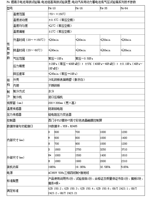 fa系列 高低溫低氣壓試驗箱適用于對材料類、電工電子類、軍工類等產品、零部件進行溫度、濕度、高度綜合試驗。