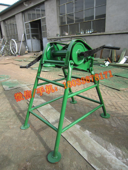 手搖絞磨:主要通過250mm 150mm 80mm三個齒輪,通過齒輪咬合,逐漸減力的機(jī)械原理,來帶動滾軸。主要用于:牽引電纜,水泥桿等重物,立桿,緊線,管道施工等。