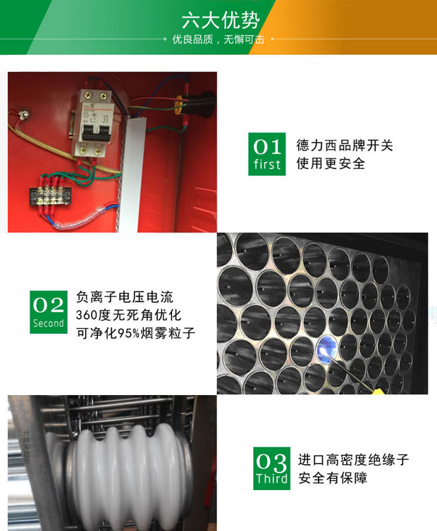 3、負離子高壓靜電在射電過程中產生的負離子臭氧的強氧化能力,對去煙氣中異味有凈化。