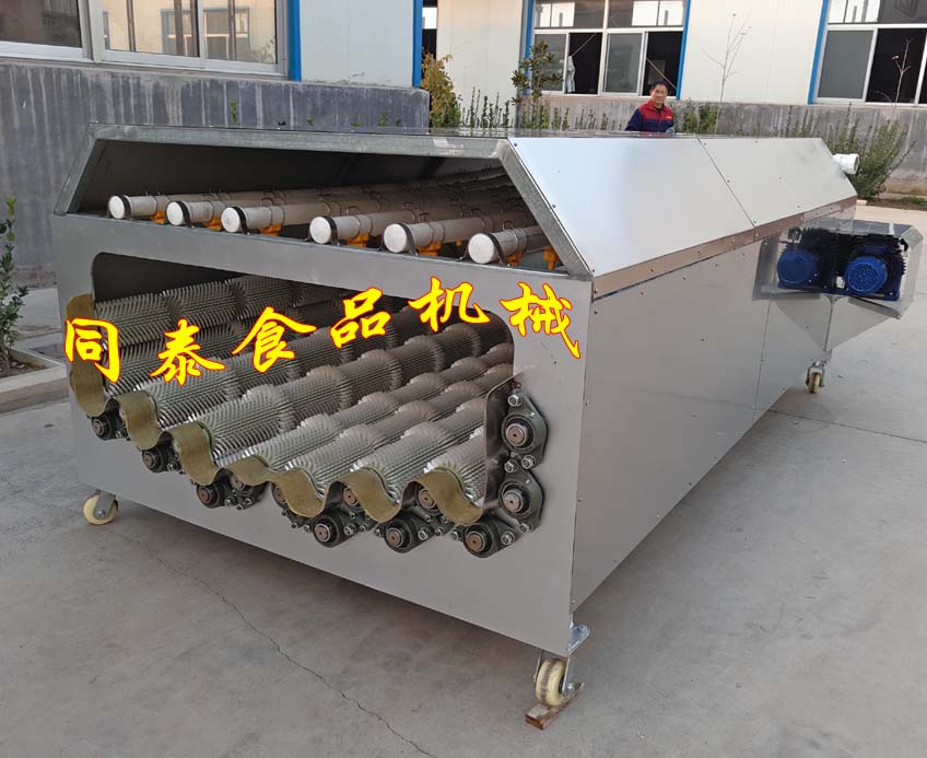 諸城同泰牌白蘿卜清洗機(jī)設(shè)計(jì)是結(jié)合了多種蔬菜水果清洗機(jī)的優(yōu)點(diǎn),采用雙傾斜式輥筒十輥單向?qū)L的方式使白蘿卜自轉(zhuǎn)前行,通過輥筒上的螺旋式長短毛配合噴水管水流將其表面的泥土去掉而達(dá)到清洗目的(其中輥筒上的螺旋長毛刷自動把蘿卜尾根部清洗干凈)。