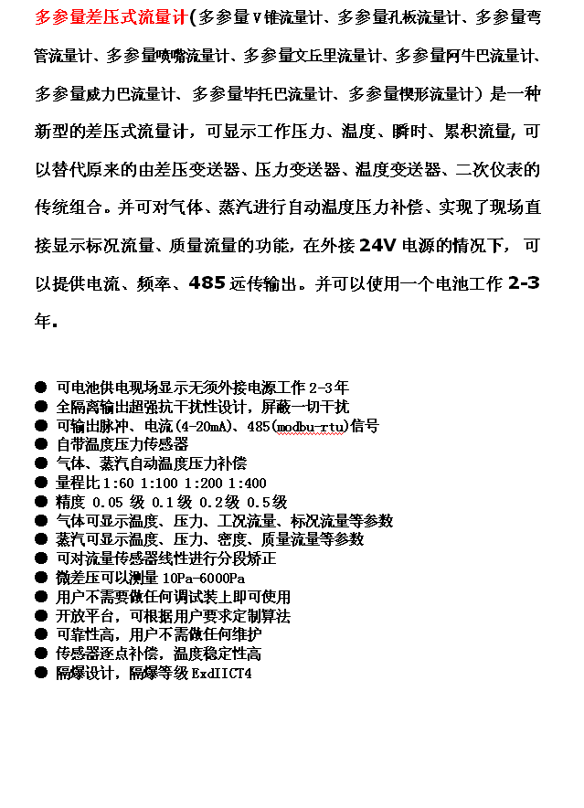 6、v錐型流量計(jì)可測(cè)的流體廣泛(液體、氣體、蒸汽),測(cè)量范圍寬(微小流量~大流量),適用的管徑dn15~dn3000。